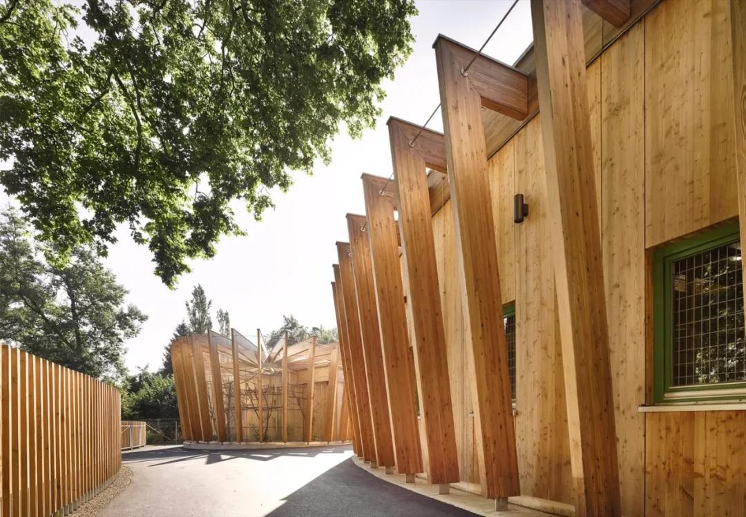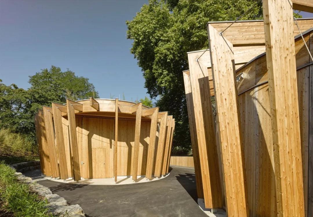 落葉松木材的使用是與獸醫密切合作的結果之一。此外,木材不僅可以抵抗,因此具有可持續性,更重要的是,不需要進(jìn)行處理。結果,不存在無(wú)意中毒動(dòng)物的危險。為了確保動(dòng)物圍場(chǎng)在Schlossgarten中延續其悠久的傳統,所有木材接頭均經(jīng)過(guò)牢固且可更換的構造。
