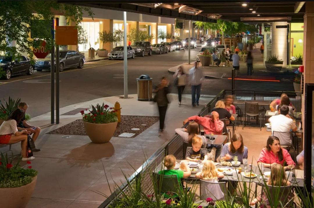 商業(yè)外擺區,或許是最好的開(kāi)放交往的典范。當不同的景觀(guān)元素(園藝、燈光、裝置)與人物、商品、品牌組合在一起,街道空間所呈現的是其特有的生動(dòng)活力的一面,人與人的交往互動(dòng),豐富的空間形態(tài)與景觀(guān)美感。同時(shí),在公共健康巨大挑戰的今天,商業(yè)外擺區可以在城市公共空間扮演更重要更有意義的角色。