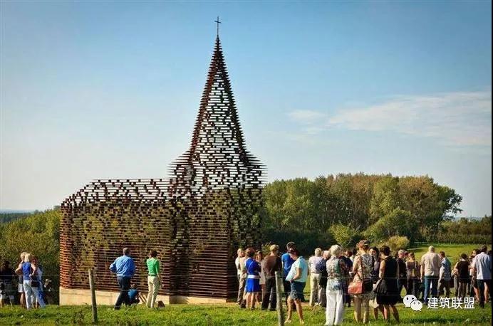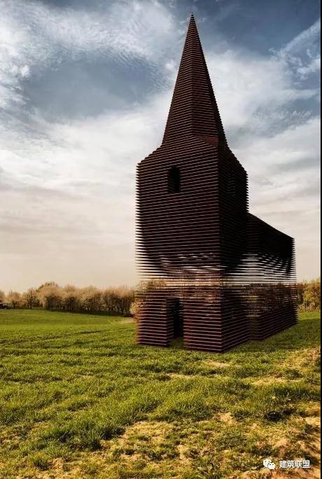 這個(gè)教堂是由生銹的鋼鐵板搭建而成,精細的設計形成一百個(gè)堆砌的層次。這些層次之間的縫隙使觀(guān)者能夠穿透空間,視野到達彼岸。這個(gè)項目的名稱(chēng)其實(shí)是叫“Reading between the Lines”,它是Z33畫(huà)廊策劃的Z-OUT項目的一部分,設計目的是為了將藝術(shù)帶入公共空間之中。