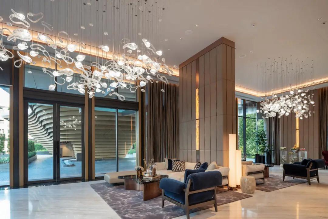 塔樓是為城市空間而設計的,另一方面,它是整體性的。塔樓提供了一個(gè)城市的景觀(guān)視野,最大限度提高了每個(gè)住宅單元的視野與通風(fēng)。在低層,每層有4個(gè)公寓(125平方米/公寓),層高3.5米。高層每層2個(gè)公寓(250平方米/公寓),層高3.8米。每個(gè)單位都有私人電梯、傭人房、獨立的服務(wù)走廊、全高三層外墻、IGU夾層玻璃、VRF空調系統,特別是三房單位有迎賓廳和露臺,服務(wù)區和生活區分離。建筑物進(jìn)行了一定的寵物友好型設計,允許寵物使用服務(wù)電梯和服務(wù)走廊,寵物公園位于項目前部。
