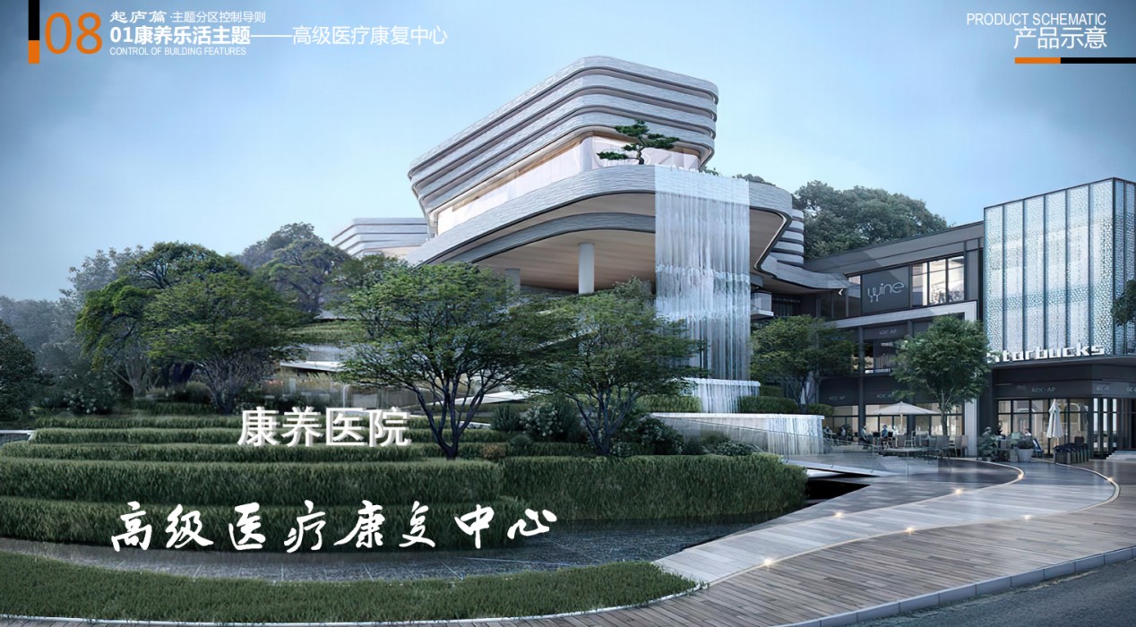 康養樂(lè )活主題,核心建筑為:康養醫院,高級醫療康復中心