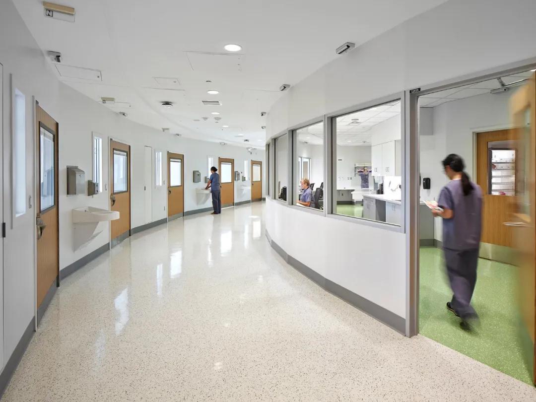 對于那些要在封閉的手術(shù)室里連續工作幾個(gè)小時(shí)的手術(shù)團隊來(lái)說(shuō),毗鄰的玻璃走廊——同樣可以看到戶(hù)外——可以讓他們在手術(shù)間隙休息一下。這是獨一無(wú)二的,因為在大多數醫院,手術(shù)套房都位于大樓的核心。