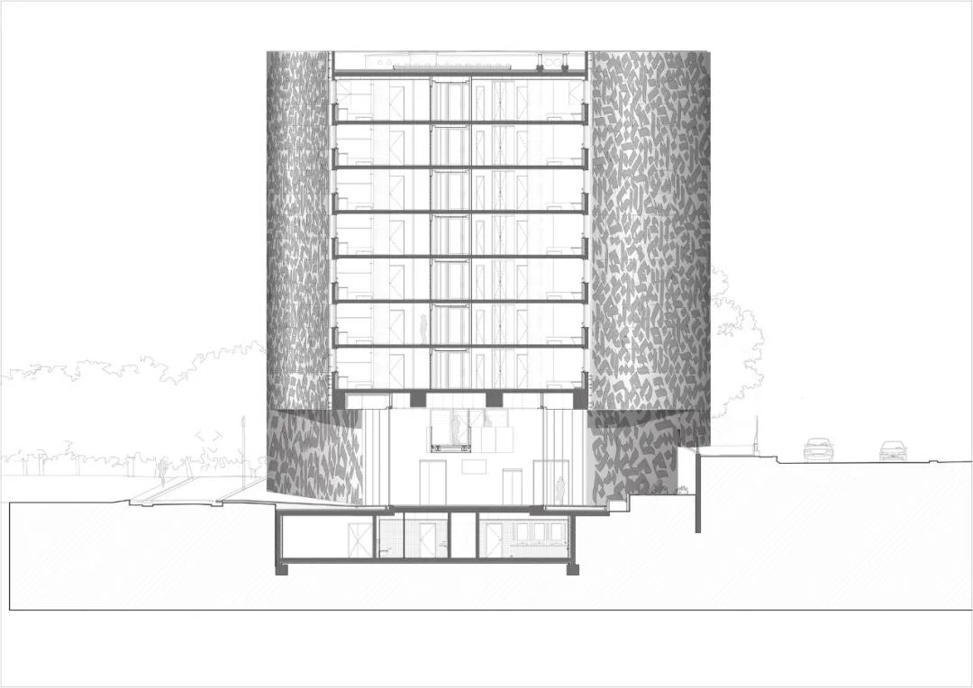 我們項目的有機形式克服了場(chǎng)地的困難,它不僅暴露在各種元素之下,而且還受到噪音和目光的影響。