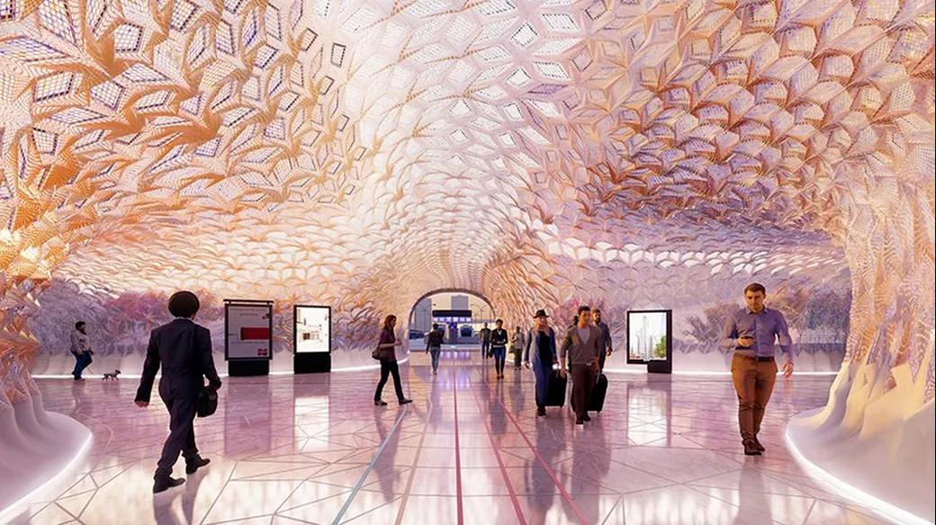 倫敦大學(xué)巴特利特建筑學(xué)院的學(xué)生團隊開(kāi)發(fā)了一種3D打印的多材料系統?!癿etaplas”由可回收塑料制成,團隊將設計應用于倫敦euston車(chē)站,并設想了一個(gè)充滿(mǎn)起伏顏色和紋理的起伏頂棚。