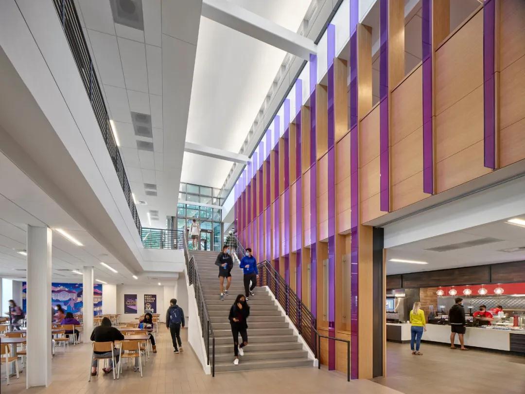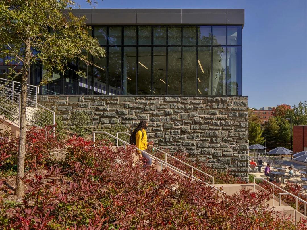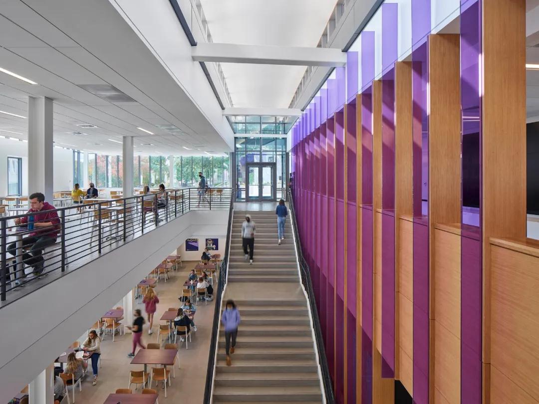 該建筑的設計、體量和場(chǎng)地組織,通過(guò)加強學(xué)生的通道,延伸到整個(gè)校園并穿過(guò)建筑,加強了社會(huì )聯(lián)系。