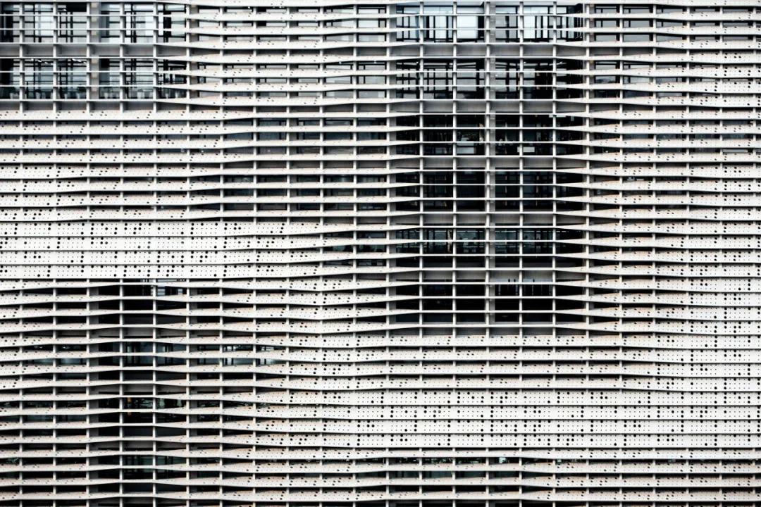 大樓的正立面由一排排自由流暢的混凝土板片構成,它仿佛一只只調皮的眼睛,向注目者眨眼示意。在夜景之下,它風(fēng)情更盛。這是否只是近來(lái)流行的立面包裝迷魂計?