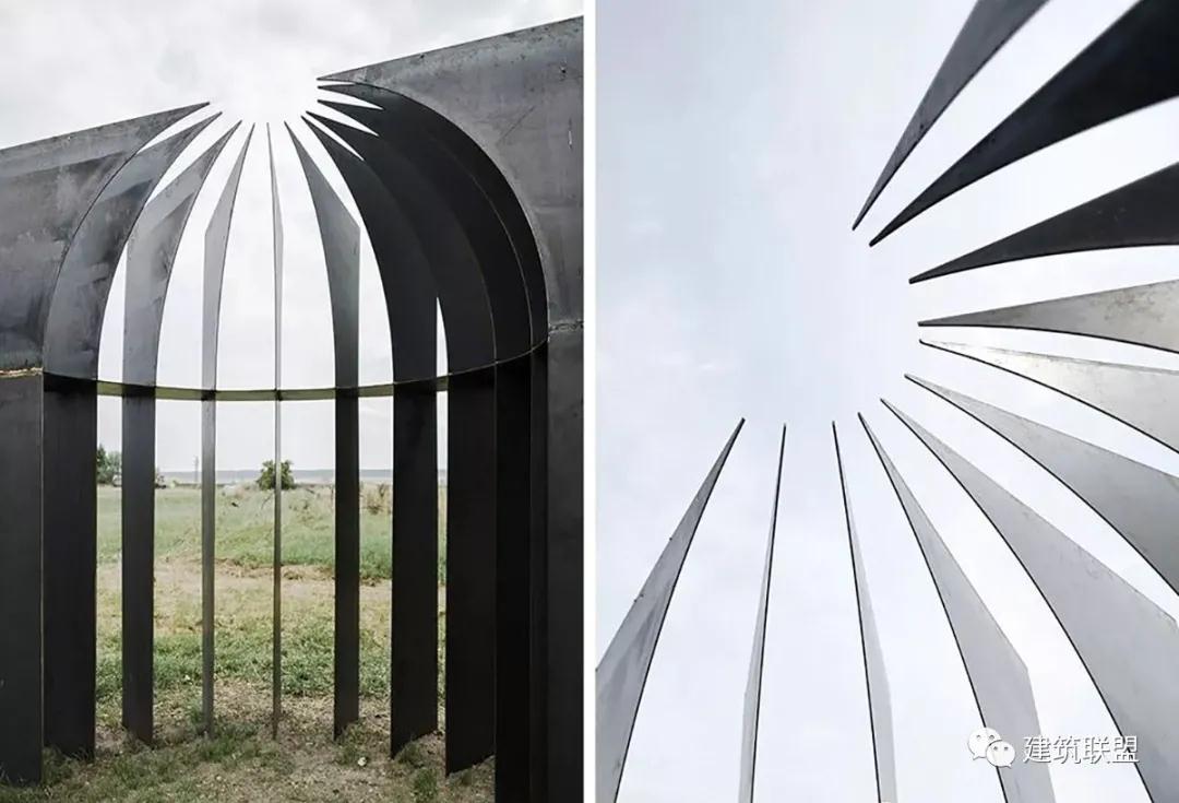 在朋友們的幫助下,這對建筑師夫婦把11塊薄鋼板焊接在一起,形成了婚禮儀式的核心結構。薄薄的鋼板被制作成半圓形態(tài),彎曲的形狀形成尖頂,就像教堂過(guò)道盡頭的圣所。Gulyás說(shuō):“我們選擇了這種鋼材,因其可以讓我們以一種相當經(jīng)濟的方式創(chuàng )造出輕薄且優(yōu)雅的輪廓。鋼材的表面沒(méi)有任何涂層,這樣小禮堂就可以隨著(zhù)歲月的流逝而漸漸變化?!?/span>