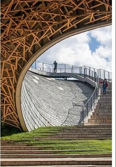 整個(gè)建筑的本身是富有表現力的,進(jìn)出方便,在建筑的斜坡下面建造了一個(gè)樓梯,從室內廣場(chǎng)一直通向屋頂,屋頂是個(gè)開(kāi)放的,富有特色的休閑公共空間,在這里可以縱覽周?chē)拿利惥吧?/span>