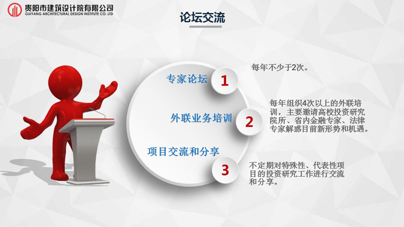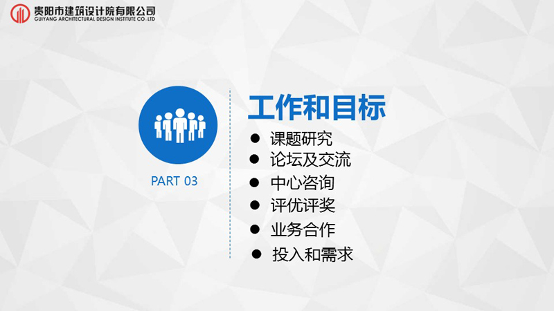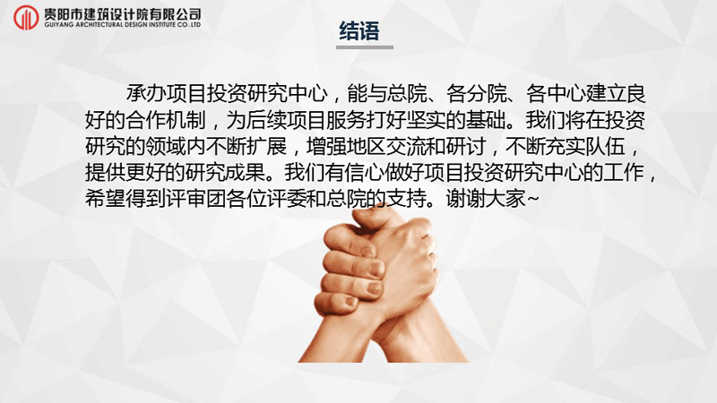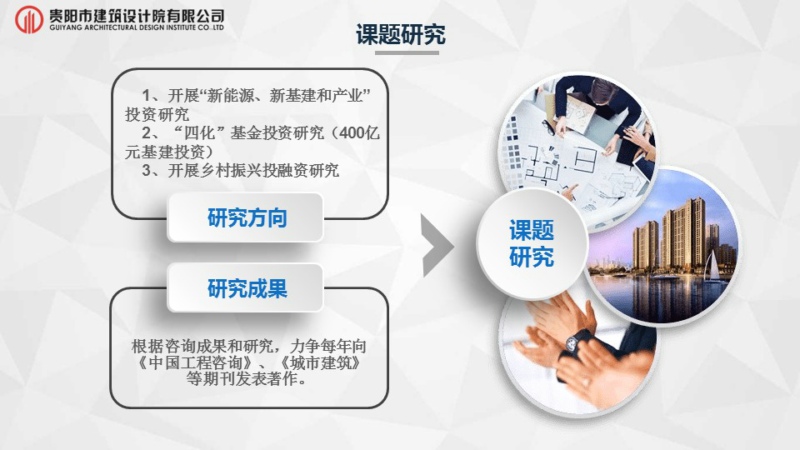 緊扣“將科技武裝到牙齒,打造科技型設計企業(yè)”的發(fā)展戰略主題,適應市場(chǎng)需求,貴陽(yáng)市建筑設計院有限公司以“極具活力,學(xué)習創(chuàng )新,成為市場(chǎng)領(lǐng)先的設計科技企業(yè)”為愿景;牢記“設計構筑美好世界,科技織就未來(lái)城市”的使命;堅持“以客戶(hù)為中心,以?shī)^進(jìn)員工為本”為核心價(jià)值觀(guān),我院在裝配式建筑與全網(wǎng)營(yíng)銷(xiāo)業(yè)務(wù)上已取得領(lǐng)先地位,業(yè)務(wù)廣度已拓展至全過(guò)程咨詢(xún)及全產(chǎn)業(yè)鏈發(fā)展。為挖掘行業(yè)深度,業(yè)務(wù)細分,我院正式成立十八個(gè)研究中心。有效調動(dòng)全體員工的積極性,增強公司內外技術(shù)資源的整合配置能力,組建一流的創(chuàng )新團隊,造就行業(yè)領(lǐng)軍人物,切實(shí)推動(dòng)我司向高水平設計院邁進(jìn)。