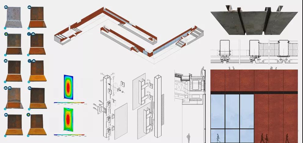巨大的、靈活的無(wú)柱體量,同時(shí)將較小的畫(huà)廊空間調整到邊緣。屋頂覆蓋著(zhù)自然氧化的彎曲鋼板,有助于排水,并賦予表面豐富的三維質(zhì)量。面板的比例適合博物館的大型規模,它們的
