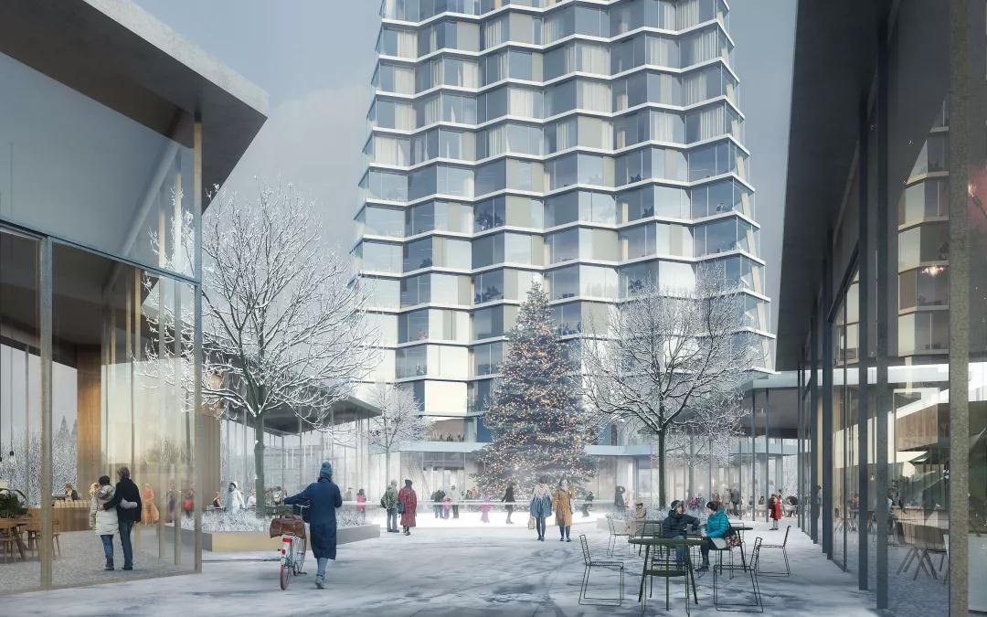 這座 56 層高的塔樓沿軸線(xiàn)移動(dòng)并向外擴展,提供廣闊的城市景觀(guān)。頂層擁有360度全景的公共屋頂和咖啡廳、餐廳和酒吧的多功能空間。該建筑的形狀受到其對城市和景觀(guān)景觀(guān)的反應的啟發(fā):下部與公共空間和城市結構相關(guān),而頂部則移動(dòng)并成為與市中心對話(huà)的燈塔。