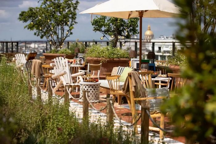 頂層享有埃菲爾鐵塔,榮軍院等壯麗景色帶來(lái)的無(wú)與倫比的體驗。這座懸浮的綠洲由果樹(shù)和植物組成,并以大型木制扶手椅,加拿大園藝,柳條燈和花環(huán)點(diǎn)綴。獨自在白天或深夜到這里喝一杯。享受巴黎帶來(lái)的盛宴。
