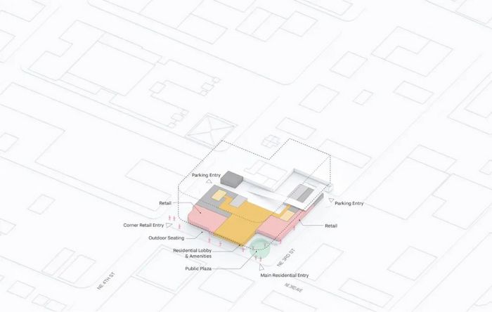 在大樓的底部一個(gè)城市廣場(chǎng)將開(kāi)發(fā)項目與社區聯(lián)結Ombelle 綜合體是 ODA 在勞德代爾堡的第二個(gè)大型住宅項目