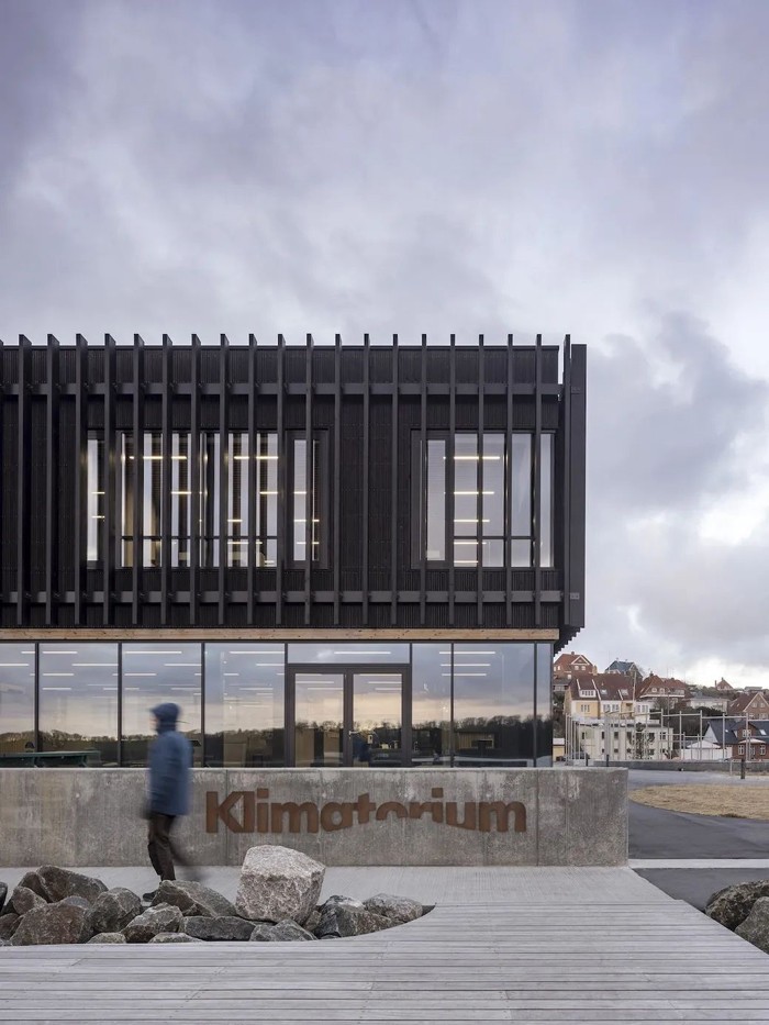 由建筑師 3XN 和 SLA 設計的丹麥Klimatorium氣候中心,是一個(gè)有著(zhù)獨特的玻璃結構和互動(dòng)臺階的現代建筑。該建筑有兩層,第一層由染黑的木板條環(huán)繞,使建筑看起來(lái)簡(jiǎn)約,并保護其免受陽(yáng)光直射。