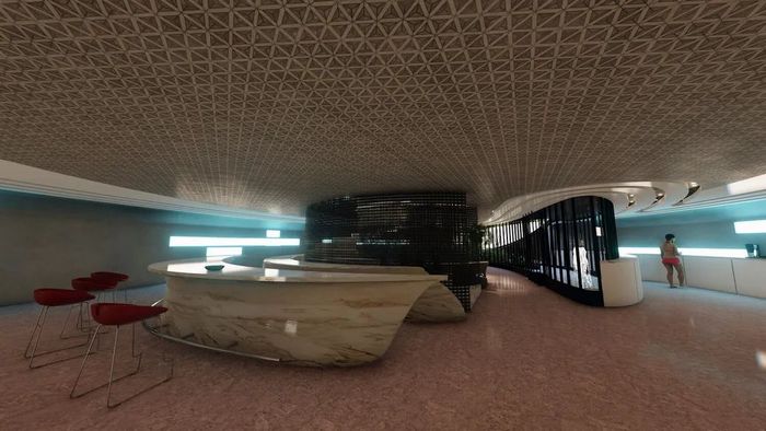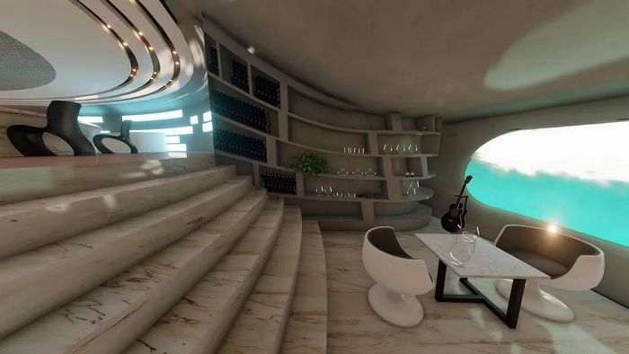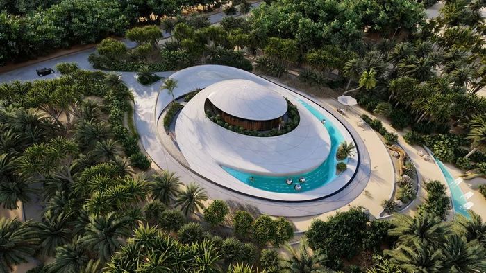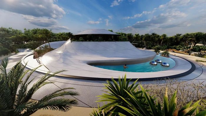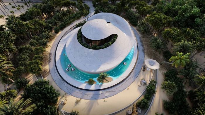 建筑的外形將溫度從頂部均勻的分布四周,在泳池的上方形成降溫作用。生活區域被設計在地下,包括一間特大號臥室、按摩房和一個(gè)全景的露臺。