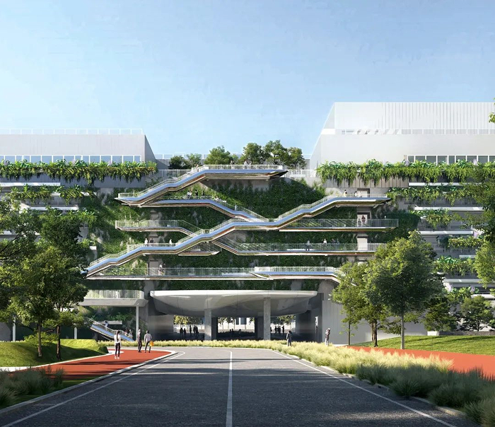 此外,項目將采用郁郁蔥蔥的綠色立面,融入周?chē)h(huán)境的青翠景觀(guān),同時(shí)捕獲空氣中的碳。根據制造和裝配設計(DfMA)方法在預制混凝土框架結構內組裝的綜合體將按照綠色建筑認證計劃LEED進(jìn)行開(kāi)發(fā),上表面跨越8000多平方米的光伏板場(chǎng)將成為周邊地區豐富的可再生能源。