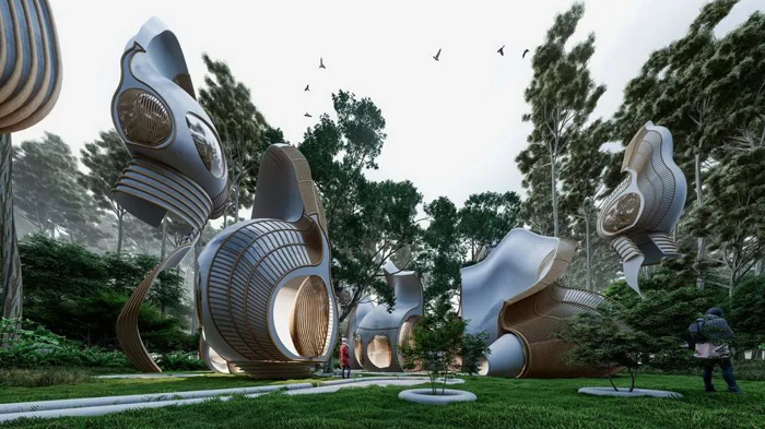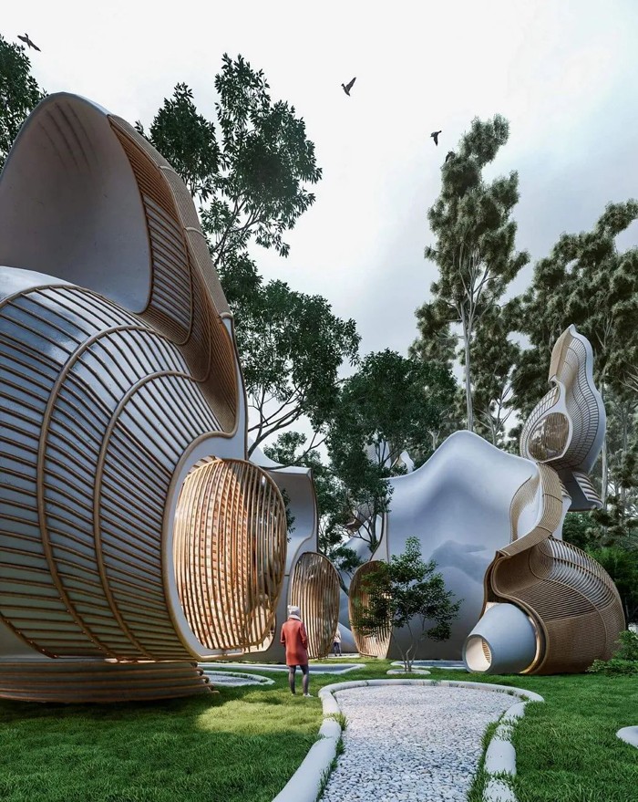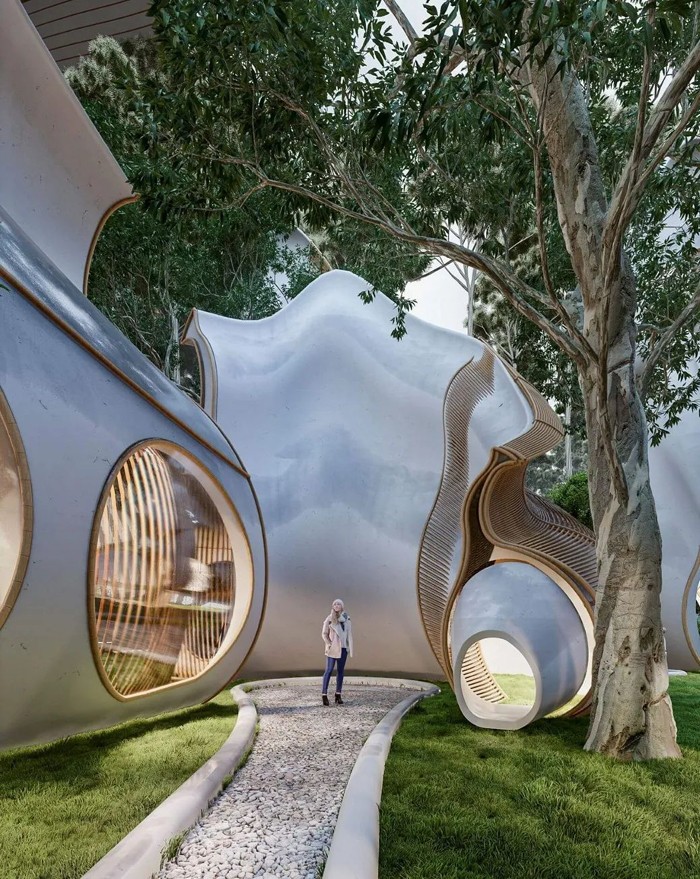 德國的Veliz Arquitectos建筑工作室設計Pabula Land ,建筑形狀如同海螺,將人帶入海底世界。設計師將自然賦予生命,展示由想象產(chǎn)生的每個(gè)想象世界,沒(méi)有物理、上下文限制,空間和環(huán)境出現,讓自己被帶走、隱藏并與現實(shí)平行。