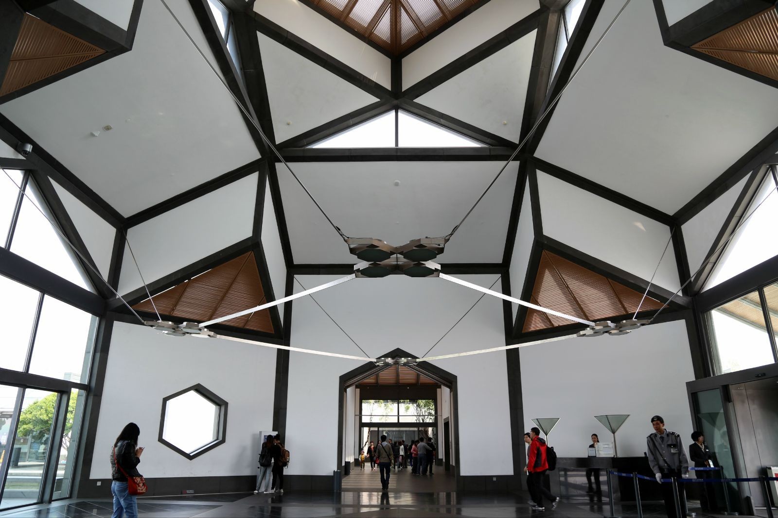 21世紀到來(lái)后,貝聿銘再次回到中國。蘇州博物館作為封山之作,他將自己多年積累的建筑智慧結合東方的傳統美學(xué)以及對家鄉的情感全部融匯在這座建筑里,創(chuàng )造出了獨具魅力的視覺(jué)之美,集現代化館舍建筑、古建筑與創(chuàng )新山水園林三位一體,新館的設計結合了傳統的蘇州建筑風(fēng)格,把博物館置于院落之間,使建筑物與其周?chē)h(huán)境相協(xié)調。