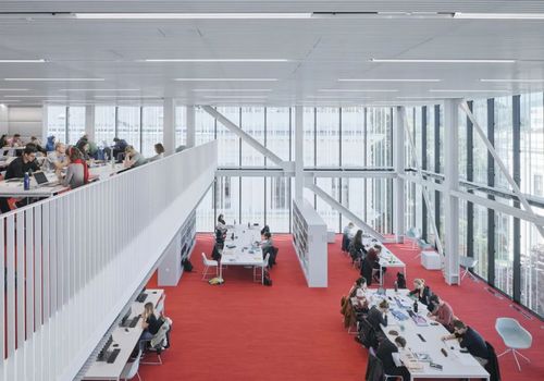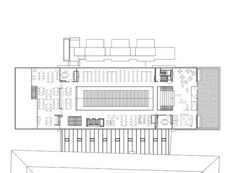 從這里,學(xué)生們還可以到達演講廳和圖書(shū)館的服務(wù)點(diǎn)。他們還可以進(jìn)入閱覽室和由玻璃平臺提供的新上層的工作站。
