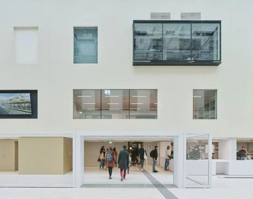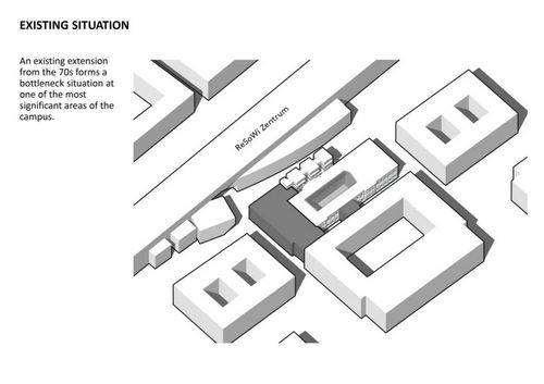 其結果是現有的、被列入名錄的建筑和新建筑之間的對立面的結合,這對參觀(guān)圖書(shū)館的人來(lái)說(shuō)是一種激勵,同時(shí)也使它成為大學(xué)校園的中心。新的中庭扮演了一個(gè)入口和活動(dòng)門(mén)廳的角色,并作為一個(gè)中心樞紐--有來(lái)自北方和南方以及大學(xué)主樓的入口。