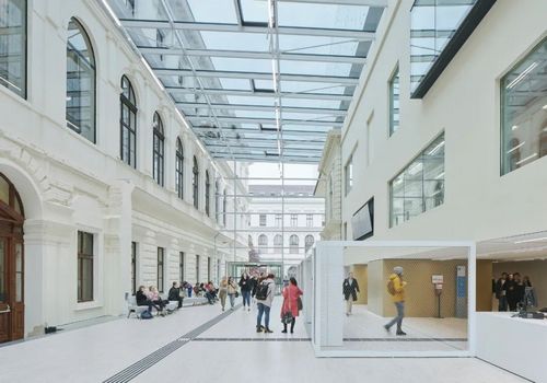 建筑師Thomas Pucher還引入了一個(gè)透明的中庭,將圖書(shū)館與大學(xué)主樓連接起來(lái),并將多年來(lái)不同的附加和擴展部分整合成一個(gè)有凝聚力的整體。他還成功地恢復了原來(lái)的圖書(shū)館和建筑的歷史部分,使其恢復了以前的光彩。