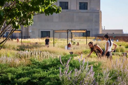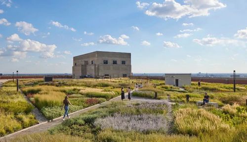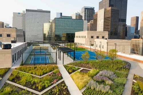 屋頂的設計考慮了可持續性和能源效率。城市草地和樹(shù)木阻止了超過(guò) 25 萬(wàn)加侖的雨水變成受污染的徑流。屋頂的 41,000 株植物由 50 多種植物組成,它們捕獲超過(guò) 100 萬(wàn)磅的二氧化碳并減少能源消耗以及空氣污染物和溫室氣體的排放。三個(gè)蜂群將草地稱(chēng)為家,保護和維護其生態(tài)系統。