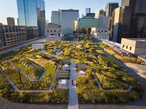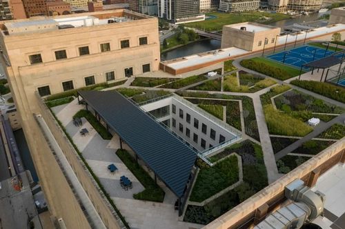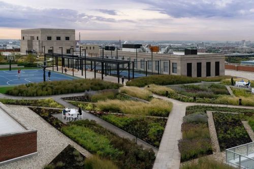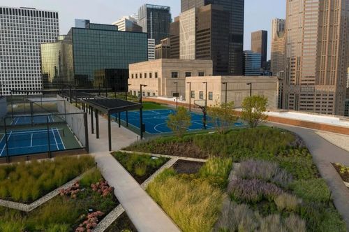舊芝加哥郵局位于城市的過(guò)渡區,周邊地區缺乏支持最終將入住該物業(yè)的近 16,000 名租戶(hù)涌入所需的便利設施。這不僅意味著(zhù)提供餐廳、健身中心和其他基本服務(wù)等服務(wù),還意味著(zhù)提供開(kāi)放空間。作為初始建設階段的一部分,開(kāi)發(fā)商知道有必要為 Post Office 社區提供一個(gè)有吸引力且方便的戶(hù)外空間,在那里人們可以走出去,享受與大自然的接觸,與同事休閑會(huì )面或鍛煉身體. 利用建筑物廣闊的屋頂面積(近六英畝)作為資產(chǎn),