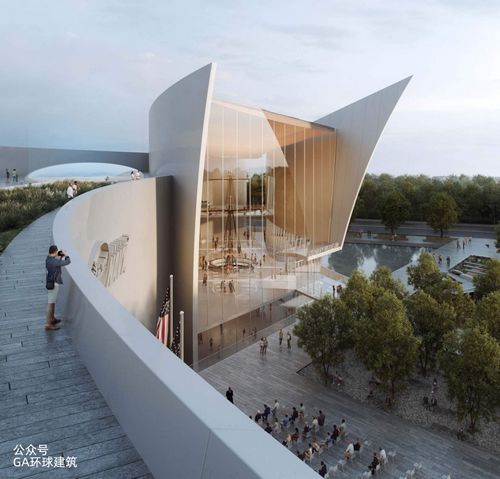 建筑的平面形式是“水和天空的對話(huà)”。建筑將覆蓋在反射金屬板上,因此它的形狀反映了水和天空,“將它們鍛造在一起”。保存下來(lái)的憲法桅桿將安裝在博物館的頂部,高達170英尺,使其成為一個(gè)從遠處可見(jiàn)的城市地標。