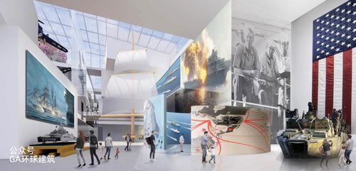 方案將建筑設想為“母港”,這是陸地與海洋交匯的地方,也是“社區和海軍匯聚在一起”的地方。博物館的多層窗戶(hù)墻提供了內部景觀(guān),“隱喻地將個(gè)人游客置于陸地和海洋的入口處,周?chē)h(huán)繞著(zhù)身臨其境的體驗和發(fā)現之路?!?/span>