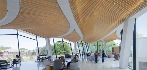 無(wú)論是在阿肯色州博物館內還是在外部,Studio Gang的褶皺屋頂都標志著(zhù)中央流通空間的走向。屋頂的獨特設計也有助于博物館的可持續性,因為雨水徑流被輸送到由景觀(guān)設計的雨水花園中,這將吸引傳粉的動(dòng)物和候鳥(niǎo)的到來(lái)。