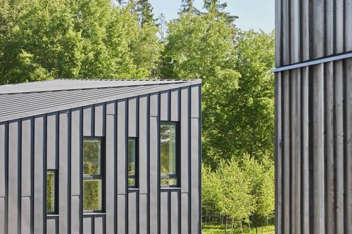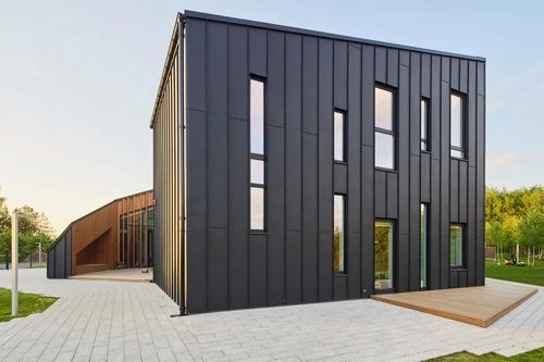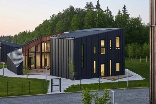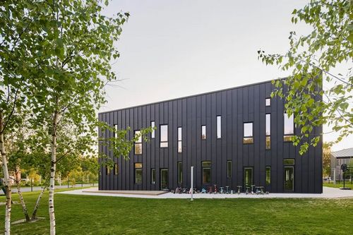 外立面的深色包層與自然環(huán)境形成鮮明對比,從地板延伸出來(lái)的又高又窄的窗戶(hù)提供了一個(gè)暢通無(wú)阻的外部世界,讓孩子們以一種獨特的方式與自然聯(lián)系。