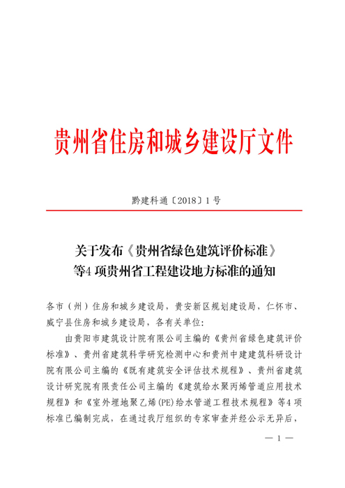 2018年1月3日,貴州省住房和城鄉建設廳黔建科通[2018]1號文件發(fā)布了由我公司主編的《貴州省綠色建筑評價(jià)標準》,編號為DBJ52/T065-2017,自2018 年2 月1 日起實(shí)施。