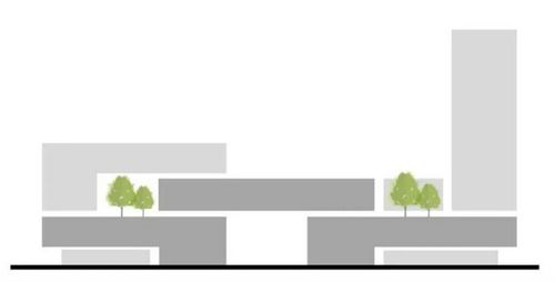 建筑總平面呈C型雷紋布局形態(tài),充分利用基地面積,形成南北中三組回型院落空間。其十字中軸的對稱(chēng)式布局,使功能布置同時(shí)具備靈活性和均好性,體現了華夏銀行沉穩可靠的公司形象。中央廣場(chǎng)為場(chǎng)地抵達及落客區,東側的懸浮體量將南北兩區連成一體,給建筑塑造了一個(gè)宏偉的大門(mén)形象,而西側通過(guò)引入街區關(guān)系,友好地面對城市和市民。升起的裙房平臺圍繞庭院連接起所有的功能,為未來(lái)的功能變化提供了充足的彈性使用空間。