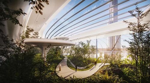 空中公園被稱(chēng)為新城市的“肺”,是項目的關(guān)鍵核心。作為未來(lái)的象征和綠色地標,空中公園夾在兩個(gè)活環(huán)之間,垂直連接各樓層,提供清新潔凈的空氣、光線(xiàn)以及多樣化的微氣候。