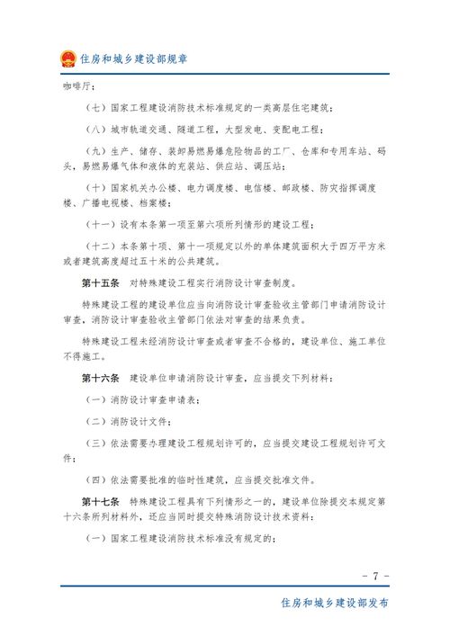 一、將第十七條修改為:“特殊建設工程具有下列情形之一的,建設單位除提交本規定第十六條所列材料外,還應當同時(shí)提交特殊消防設計技術(shù)資料: