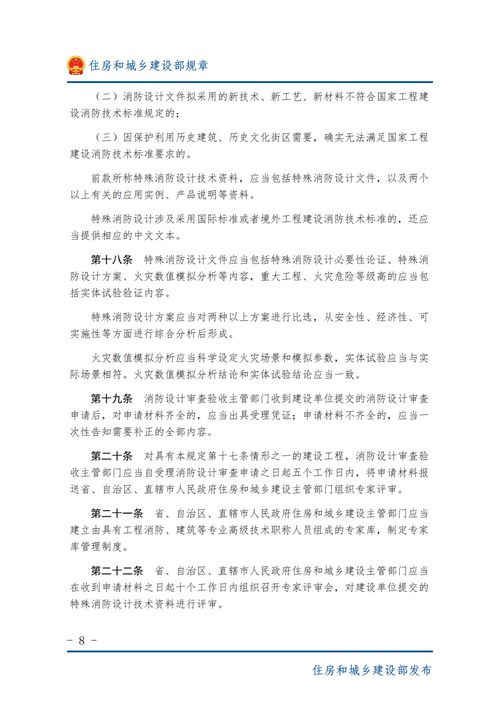 二、增加一條,作為第十八條:“特殊消防設計文件應當包括特殊消防設計必要性論證、特殊消防設計方案、火災數值模擬分析等內容,重大工程、火災危險等級高的應當包括實(shí)體試驗驗證內容。
