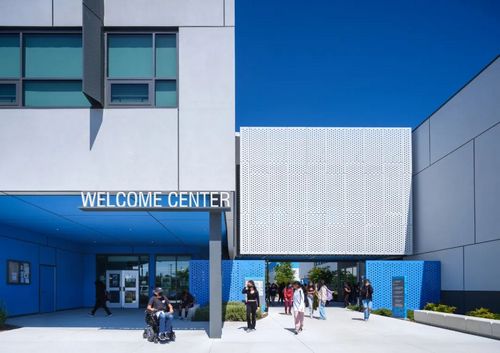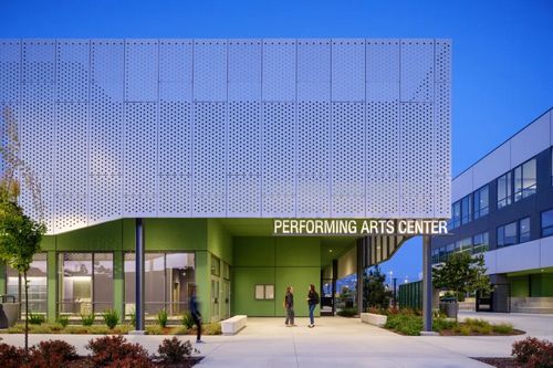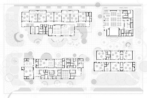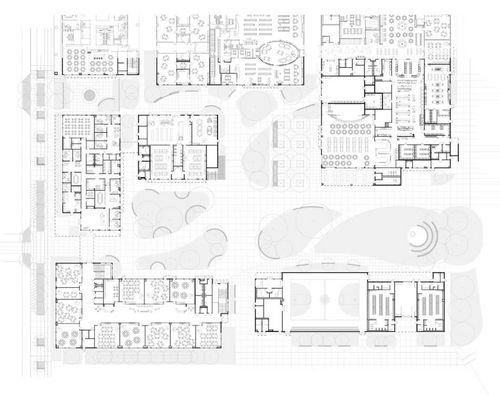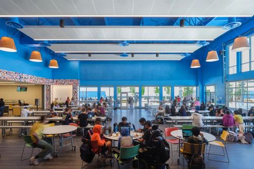 將這些建筑集中在一起,既保留了開(kāi)放空間,又最大限度地利用了共用設施的機會(huì )--初中和高中共用一個(gè)媒體中心;初中和高中共用一個(gè)廚房;教師共用一個(gè)室外休息區;學(xué)校共用一個(gè)表演藝術(shù)中心。