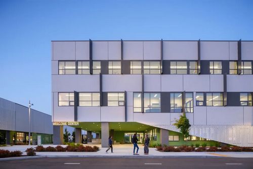 校園強調被動(dòng)策略--選址、朝向和體量--以最大限度地利用日光和景觀(guān),同時(shí)最大限度地減少能源負荷。綜合場(chǎng)地解決方案側重于雨水處理和低用水量種植,而室內策略則利用可持續材料和資源來(lái)提高室內空氣質(zhì)量。