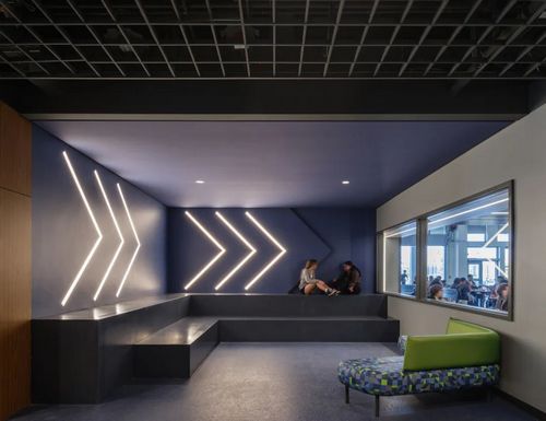 原生景觀(guān)為可持續的室外學(xué)習、社交和娛樂(lè )空間提供了支持。填充式地塊開(kāi)發(fā)、與公共交通的連接、校區的鄰近性以及隨之而來(lái)的共用機會(huì ),都為 "無(wú)光建筑 "戰略提供了支持。