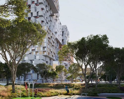 葡萄牙建筑工作室OODA設計的Hora Vertikale。這座獨特的堆疊式塔樓的設計旨在在城市綠洲中嶄新打造一個(gè)獨特的垂直社區。占地5.5萬(wàn)平方米,高達140米,該建筑挑戰了傳統住宅高度,旨在成為一個(gè)集住宅、公園和多功能設施于一體的綜合社區。