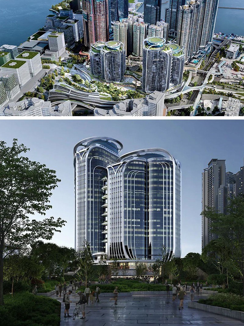 項目位于香港高速鐵路西九龍總站上方,占地約29.73萬(wàn)平方米,集公共、辦公和零售空間于一體。該地塊由新鴻基地產(chǎn)于2019年11月以422.32億元港幣拿下,刷新當時(shí)香港總價(jià)地王記錄。