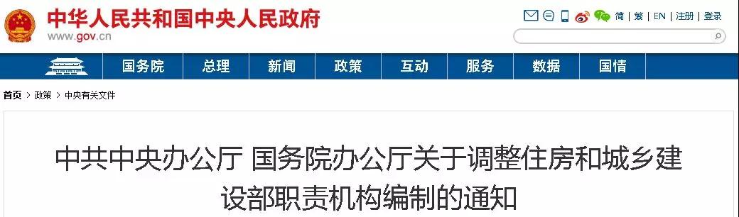關(guān)于調整住房和城鄉建設部職責機構編制的通知