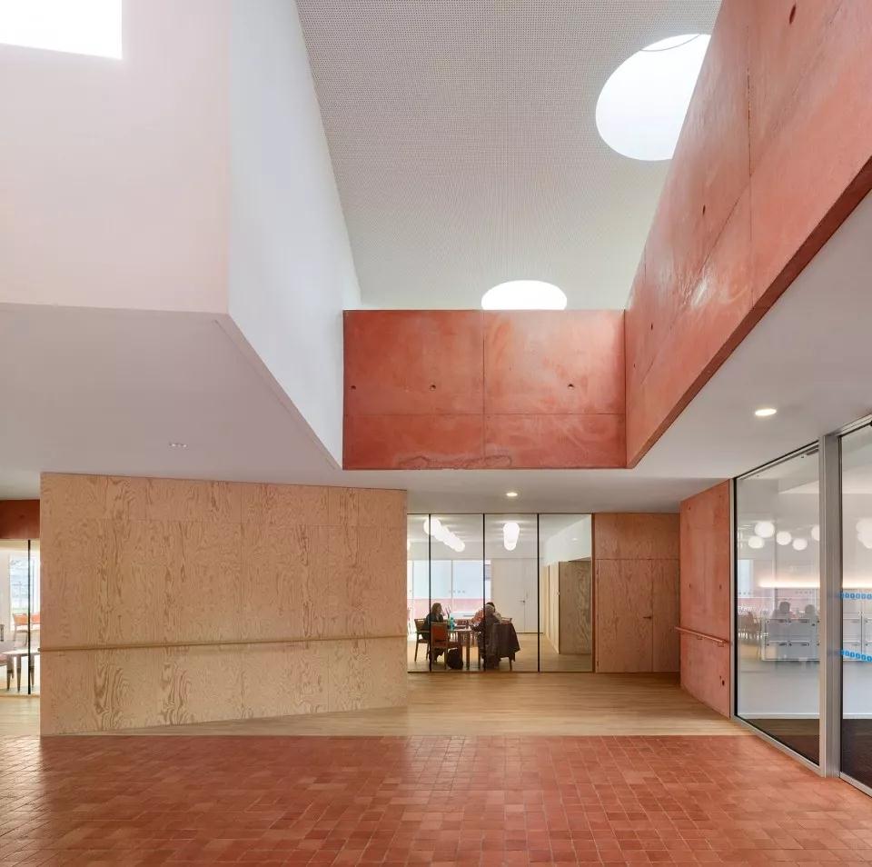 進(jìn)入Huningue,是一個(gè)明亮而寬廣的公共空間,空間大部分的建筑都由紅色的混凝土和陶土制成,給人一種溫馨而親切的感覺(jué)。