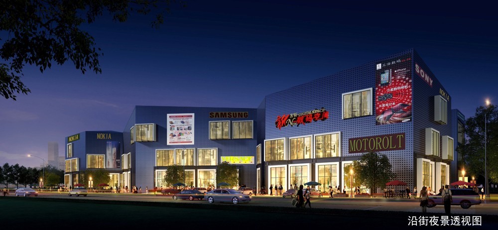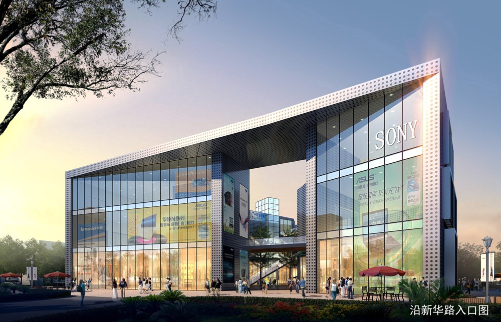 項目主體建筑由多棟建筑圍合構成,建筑高度均為16米左右。建筑圍合呈不規則形體布局,較低的建筑高度和空間豐富的商業(yè)街形成良好的尺度,利于商業(yè)活動(dòng)的進(jìn)行,形成步行街良好的商業(yè)及休閑環(huán)境。