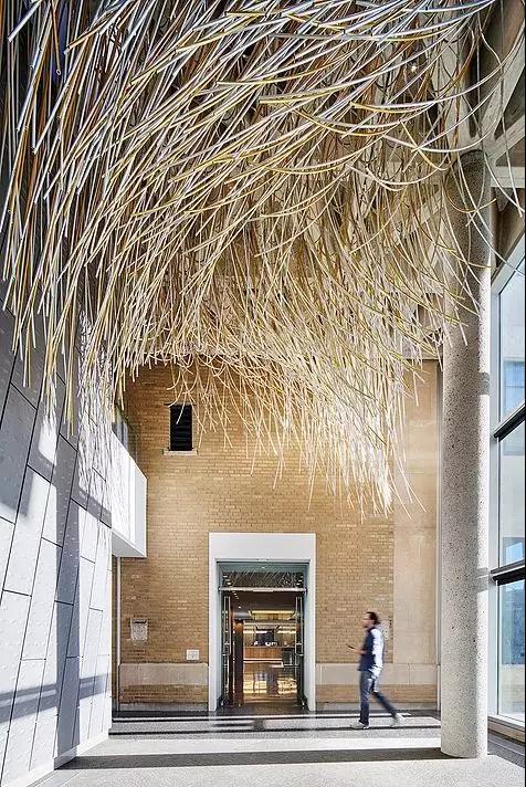 這座懸掛式雕塑位于密蘇里州堪薩斯城市中心的警察局總部大樓內。銀色和金色成品管形成獨特的天花板雕塑。