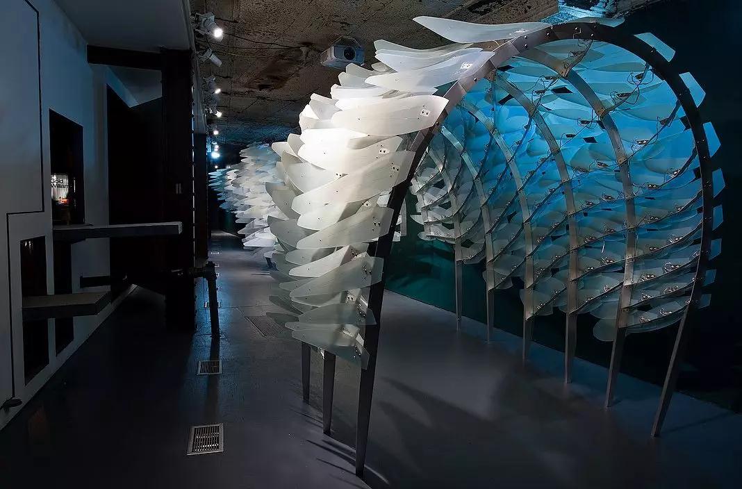 內部的 LED 照明裝置可使色彩不斷發(fā)生變換,多彩靈動(dòng)的波濤蕩漾著(zhù)所有過(guò)路人的內心。