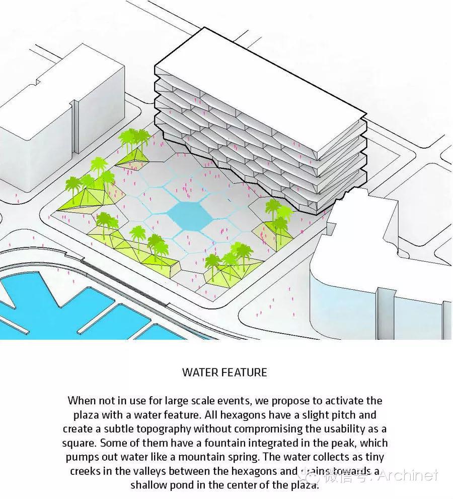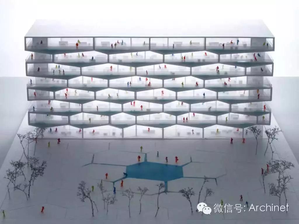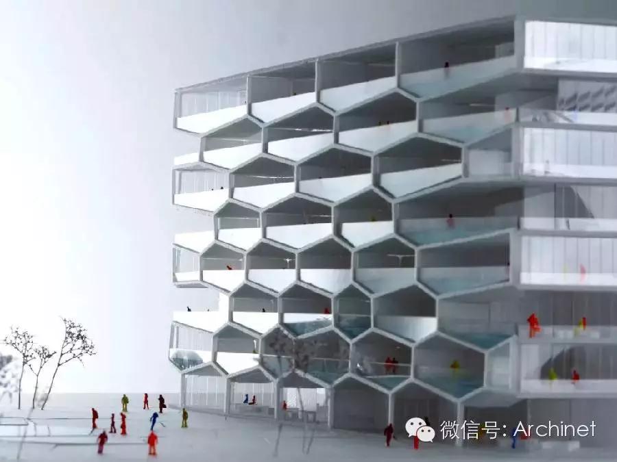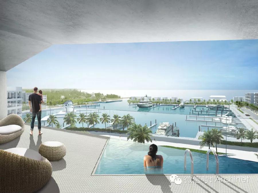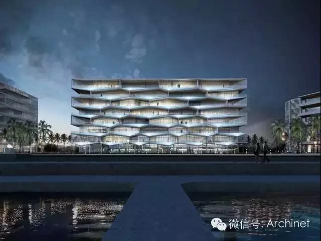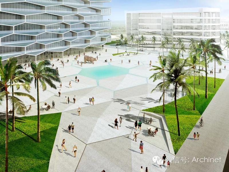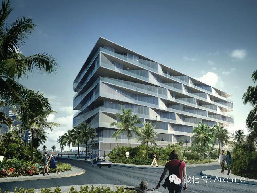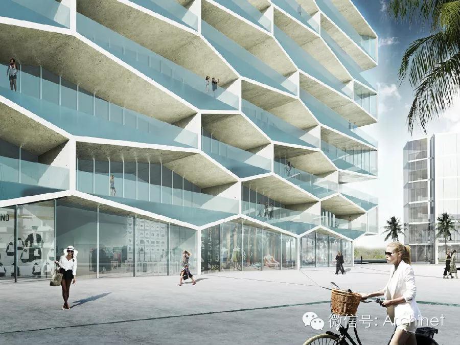 這是 BIG 聯(lián)合 HKS、MDA 設計的巴哈馬蜂窩度假村(Honeycomb resort in Bahamas),位于新普羅維登斯島的南部海岸。建筑外墻的六角形圖案,成為一道亮麗的風(fēng)景線(xiàn),與周?chē)利惖暮?,高爾夫球?chǎng),將奧爾巴尼打造成一個(gè)新的度假勝地。