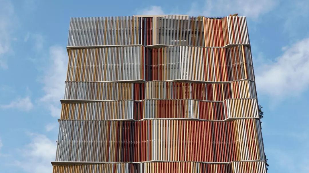 外墻全部由條形格柵包裹,外墻設計也參照了“垂直森林”的概念,特別是意大利建筑師斯特凡諾·波里(Stefano Boeri)的作品,在露臺處種植樹(shù)木的手法。