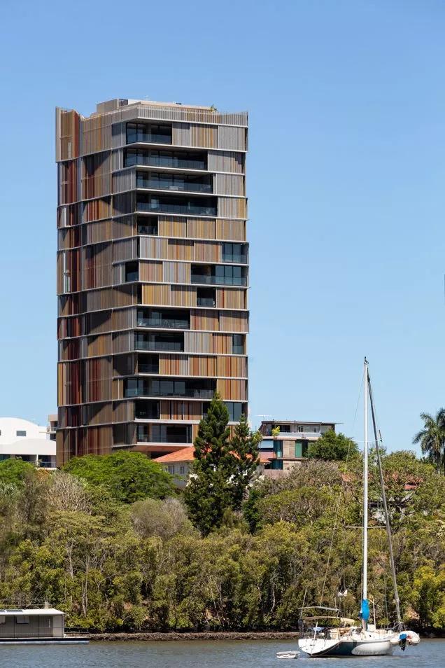 Walan 公寓位于澳大利亞布里斯班的河濱,于2018年12月完工,由GBW集團開(kāi)發(fā)的項目,由布里斯班當地事務(wù)所Bureau Proberts設計完成。整棟建筑只有14套住宅,每一套都是一個(gè)建筑平面。