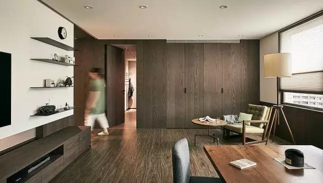 這可以說(shuō)是最簡(jiǎn)單的方法,沒(méi)有門(mén)套,顏色和材質(zhì)看起來(lái)和墻面一樣,然后再配合一些直線(xiàn)條的使用,弱化門(mén)的邊框和縫隙。如果縮小電視背景墻的范圍,就會(huì )讓客廳顯得太過(guò)小氣,用隱形門(mén)擴大視覺(jué)效果再好不過(guò)了。